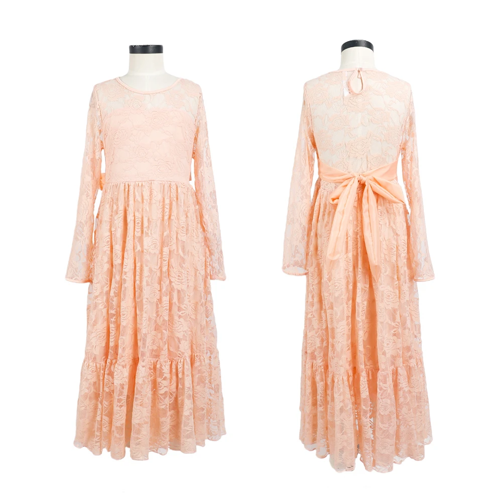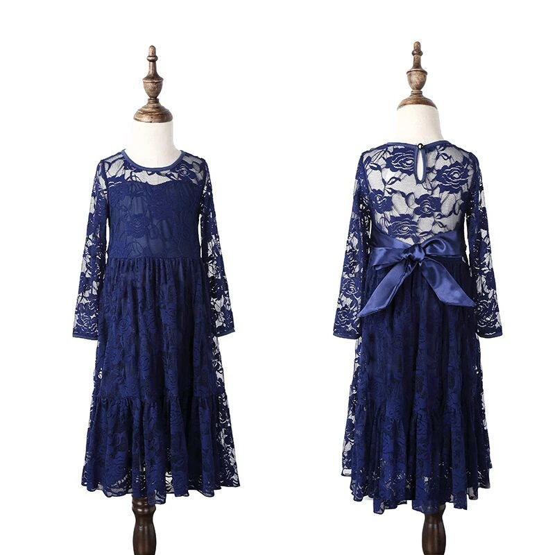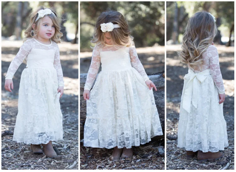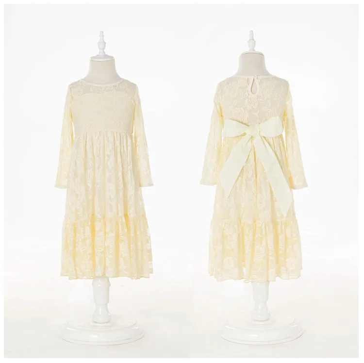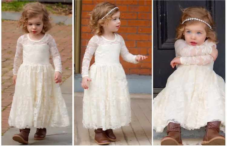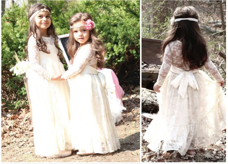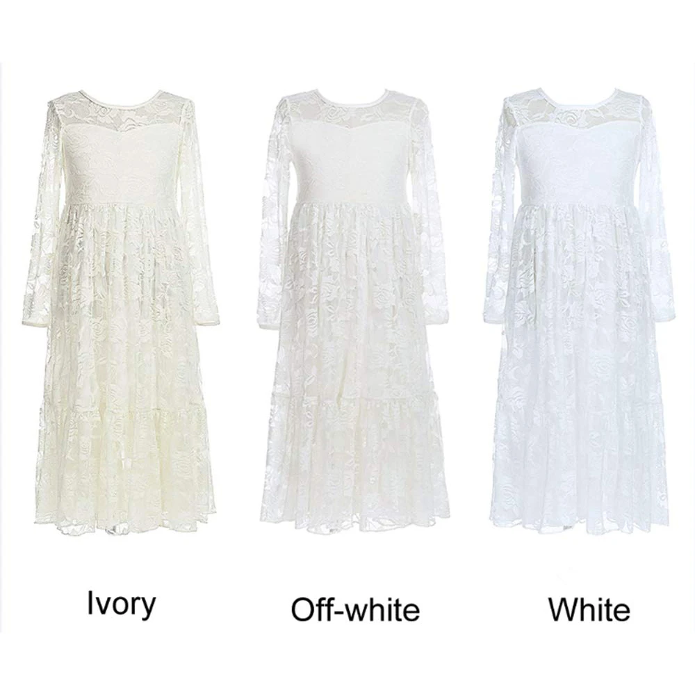 2-12 Year Flower Girl Dresses White Beige Long Sleeve Summer Dress Communion Toddler Kids Christening Wedding Bridesmaid Clothes