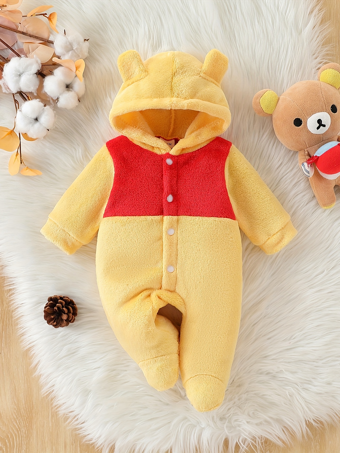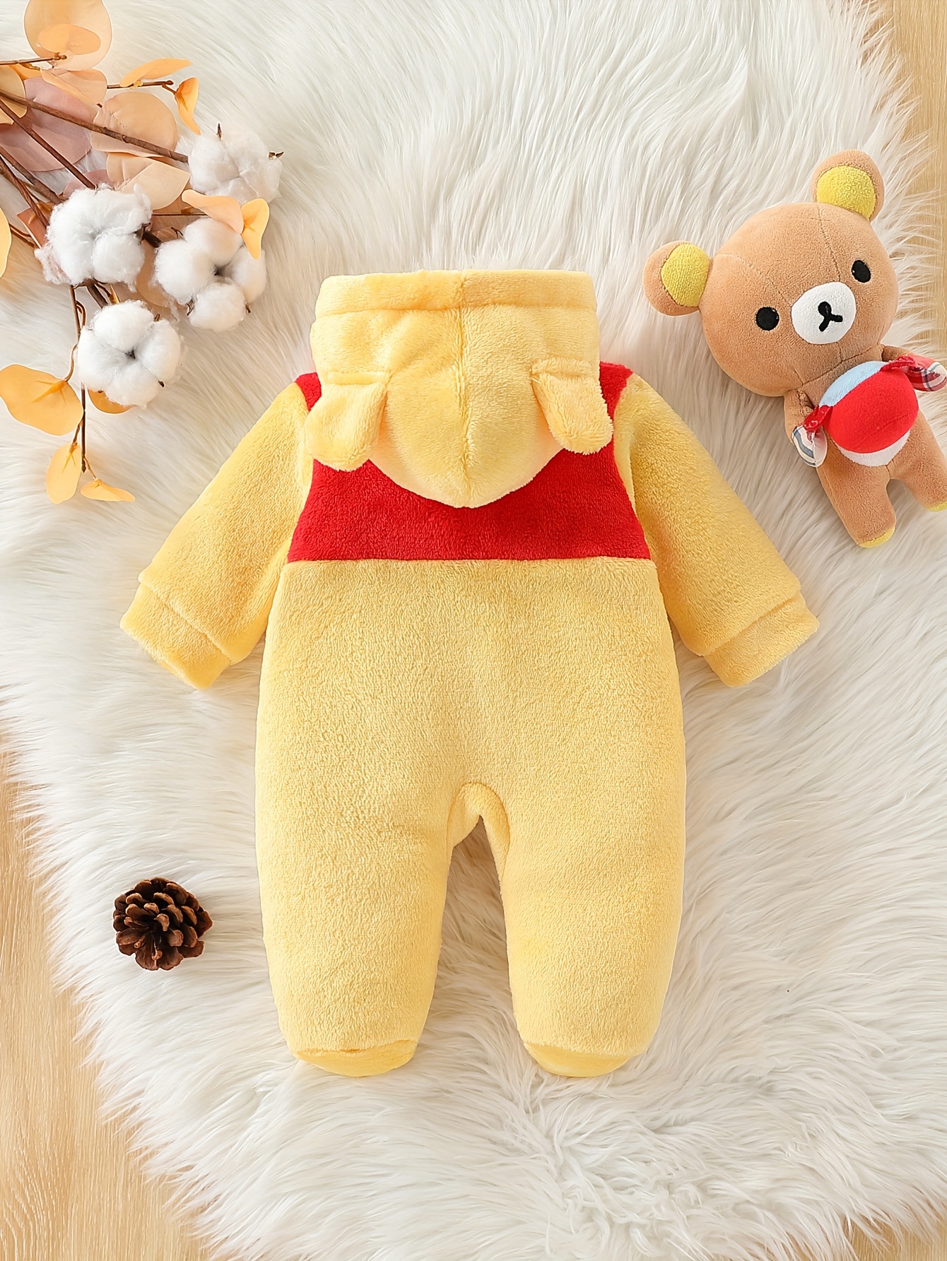 Autumn and Winter Cute Cartoon Themed Warm Plush Hooded Footed Romper for Baby Boys and Girls, Soft, Thickened, Warm and Comfortable, Daily Essential, Gift Box, Perfect for Outdoor, Winter Baby Clothes, Outdoor Baby Wear, Sof