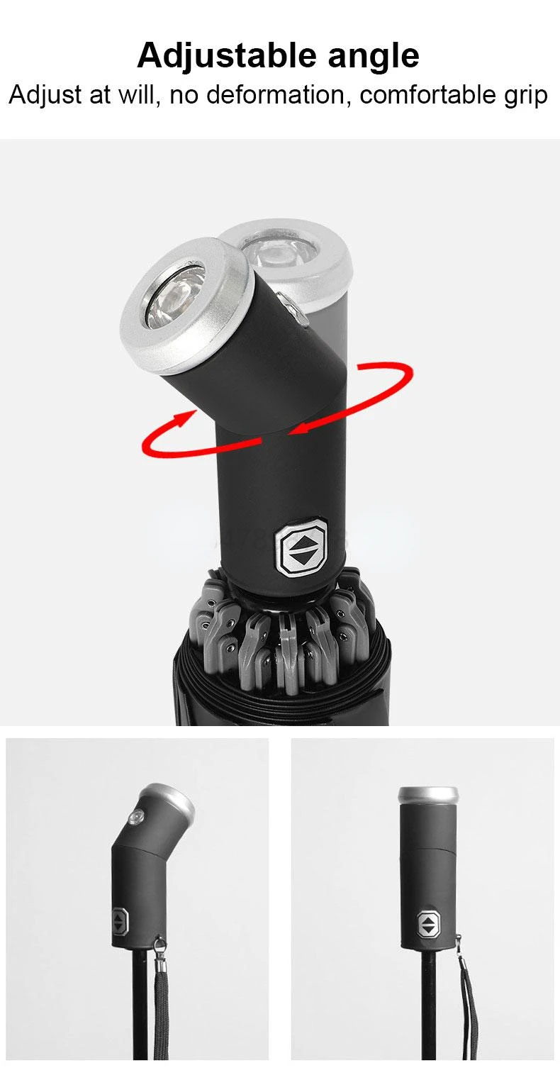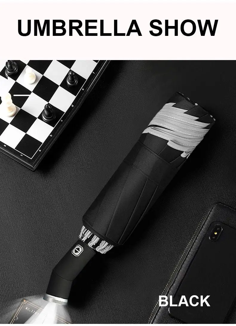 Windproof Automatic Umbrella With LED Flashlight Reflective Stripe Reverse Light Umbrellas Rain Men Women Large Folding Parasol