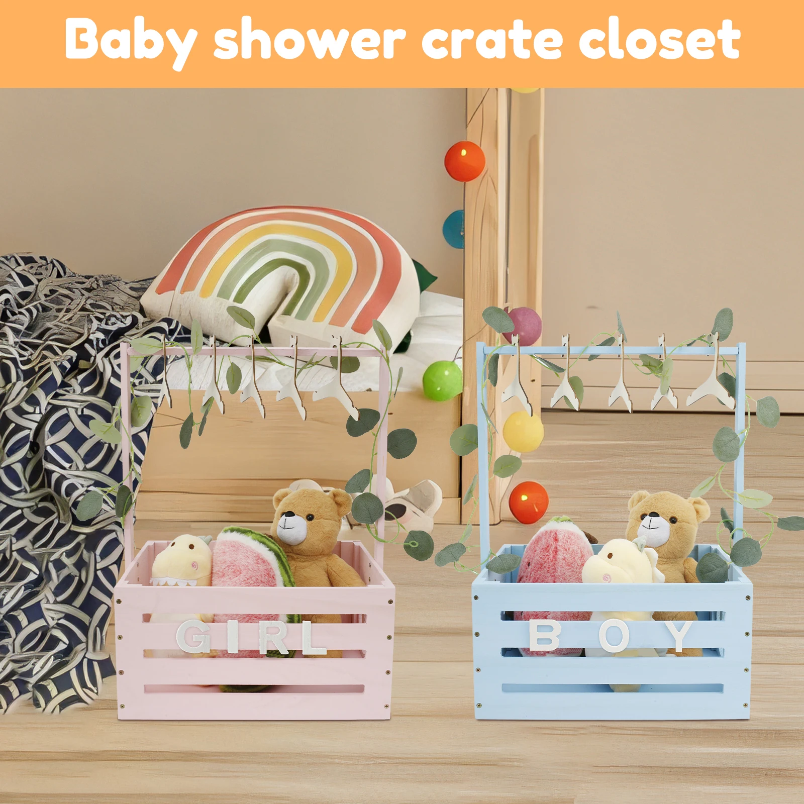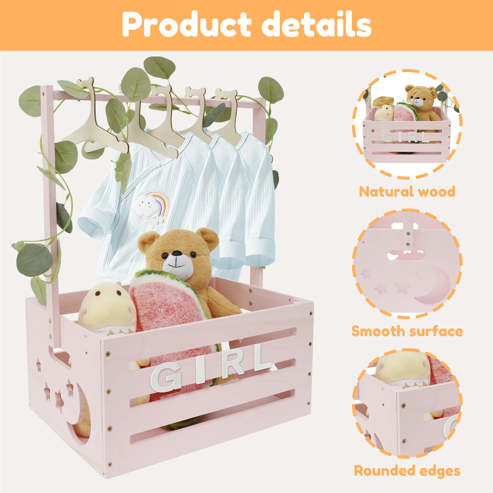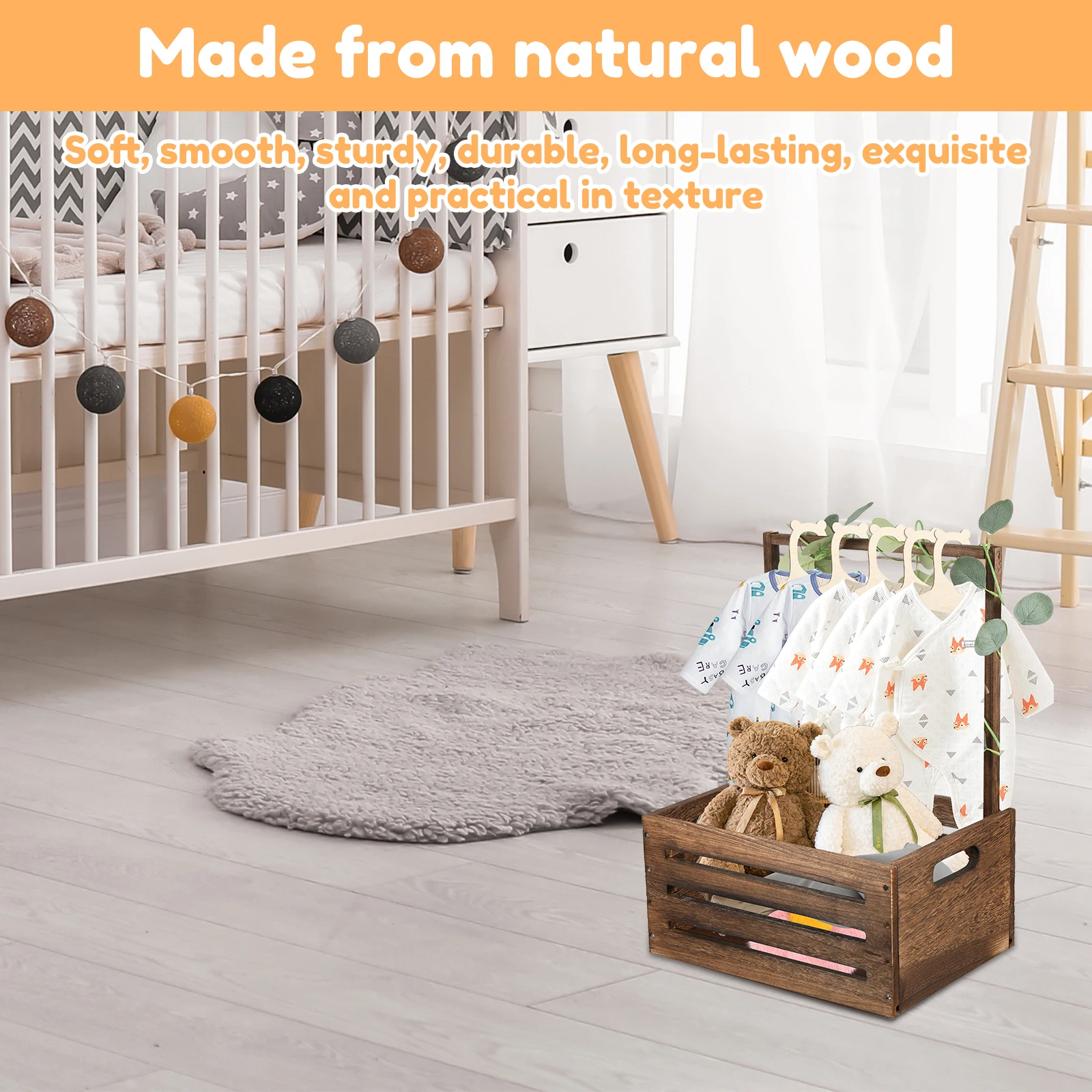 Wood Baby Shower Storage Basket Baby Toys Storage Crate with Handle Decorat Multipurpose Gift Basket for Boys Girls New Parents