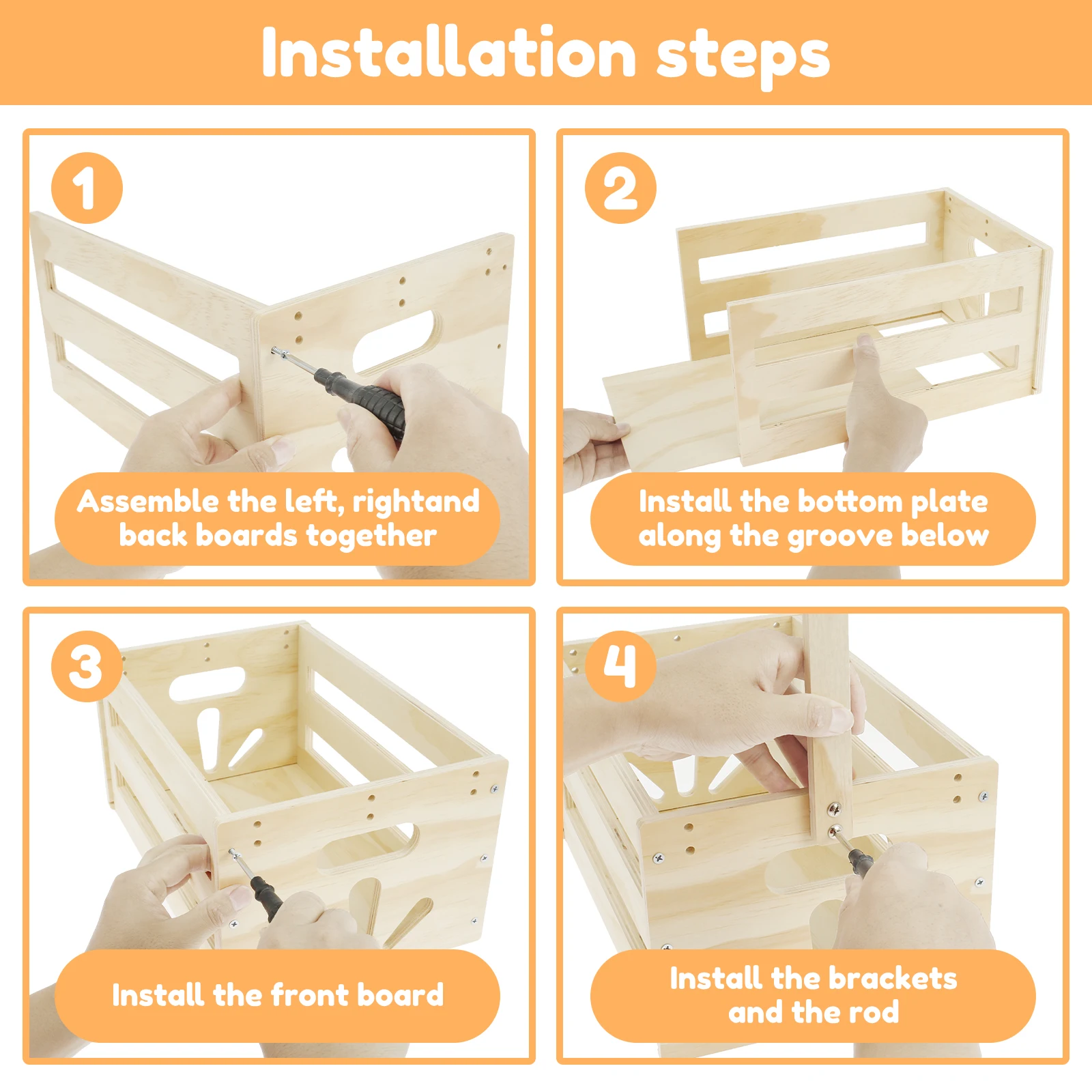 Easy to Assemble: Baby storage crate is pre-drilled and comes with screws and screwdriver for easy assembly. With hollow-out sides, handle can be mounted in the center or on the side as needed, and can decorate the crate with artificial flowers or ribbons